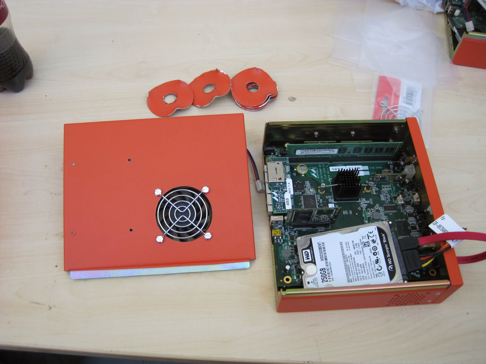 This was obviously causing some issues for the ARM Debian ports which Steve wanted to rectify. After talking the problem through for a while we came to the conclusion we could use much larger 60mm fans to blow air directly through the top of the case onto the cpu heatsink.